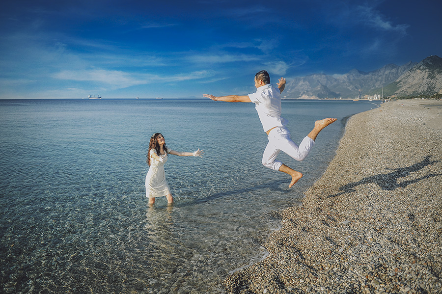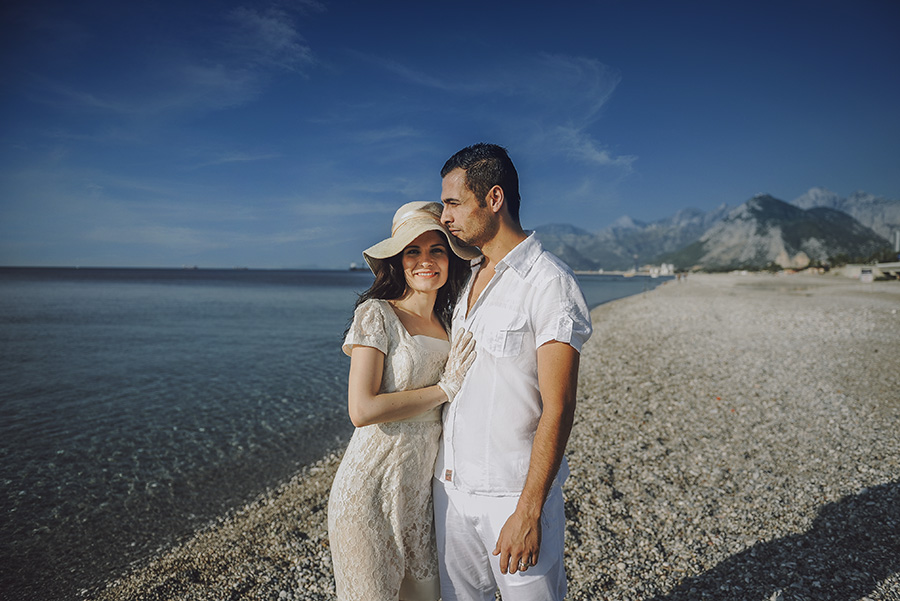 İnci İşler in hayatımıza girmesi aslında 2011 yılında oldu . Abim evlenirken güzel eşi Emine sıradan bir şeyler istemediğini ve İnci İşler e ulaştığını belirtti. Fotoğrafları gördüğümüz zaman Gürkan ve ben kesinlikle bunu istediğimizi anladık. Çift olarak ikimiz de çok açık bir kişiliğe sahip olmadığımız için fotoğraf çekiminde rahatlık bizim için çok önemli idi. Emine bize bu konuda tam garanti verdi. Fotoğraflar da gördüğümüz gibi olunca tereddüt bile etmedik. Kendisi ile tanışınca da doğru bir karar verdiğimizi anladık. Öyle ki uçağı ertesi gün sabah saat 10 da olmasına rağmen sabah saat 6 da bizimle buluşup Antalya sıcağında fotoğraflarımızı çekmeye seve seve gönüllü oldu. Fotoğraf çekimini düğünden 3 gün önce yaptık. Gelinliğin başına gelmeyen kalmadı denize girdik, ormana girdik, harabelere çıktık. Sonuçlardan emin olduğum için hiçbirini gözüm görmedi. Sonuçlar muhteşem. Teşekkürler İnci İşler hem sağladığın pozitif uyum için hem de mesleğindeki profesyonelliğin için..